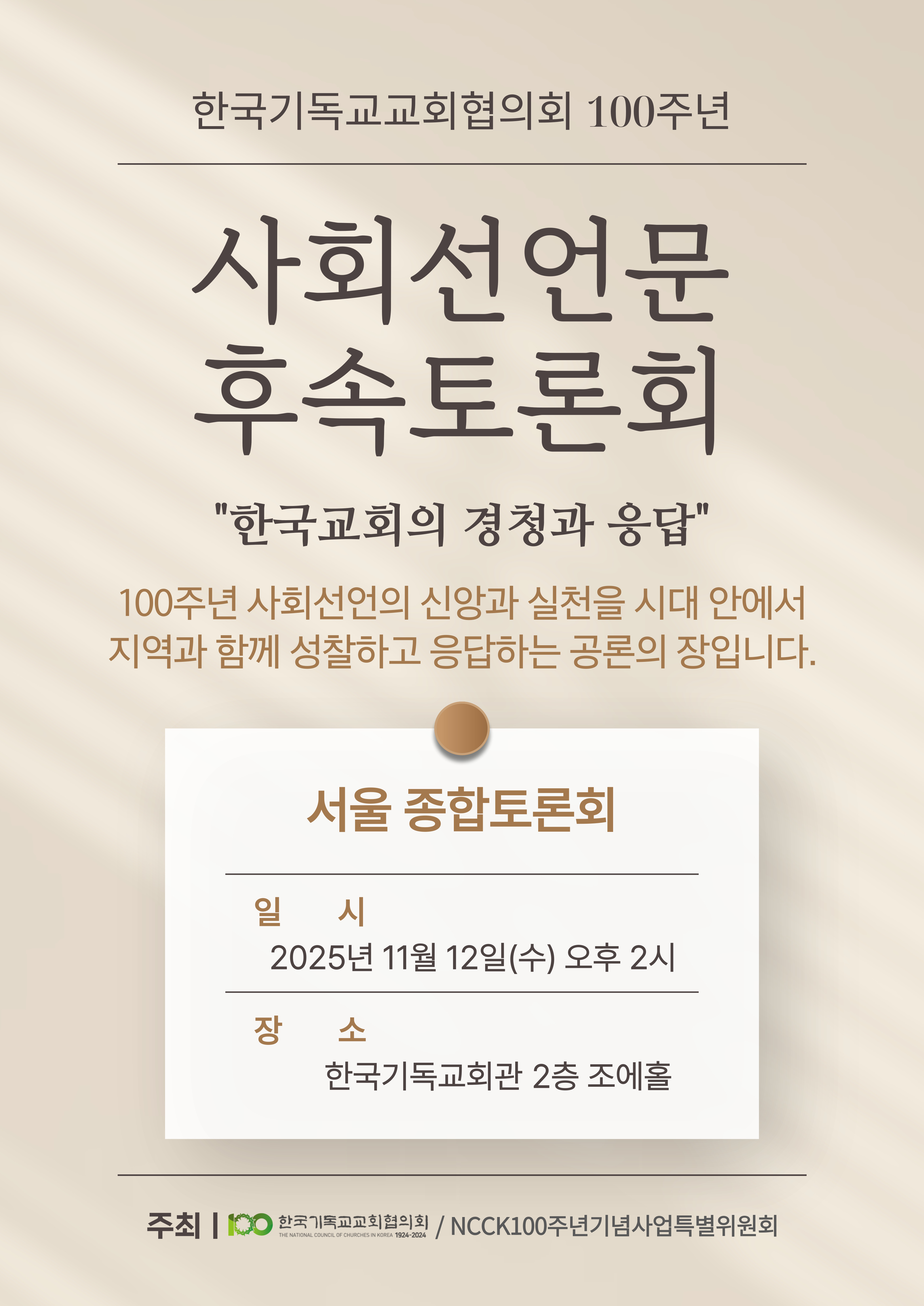 한국기독교교회협의회 (NCCK) 100주년 기념대회 안내