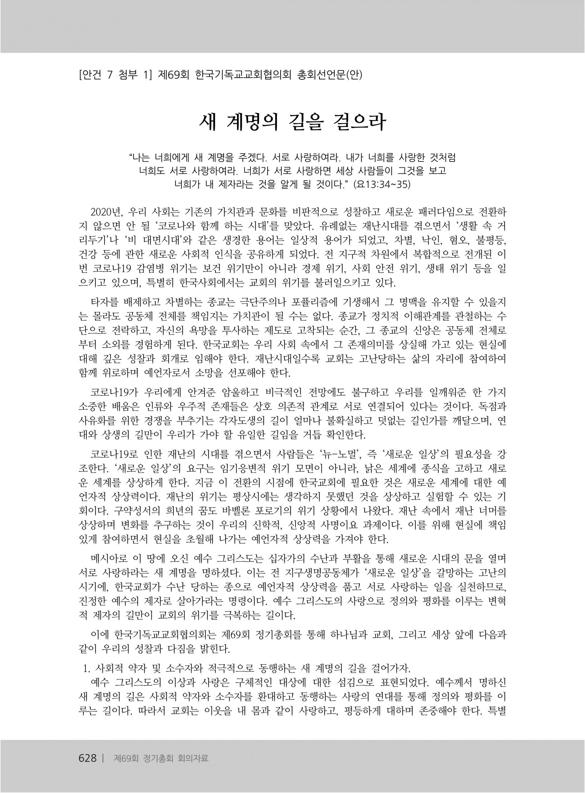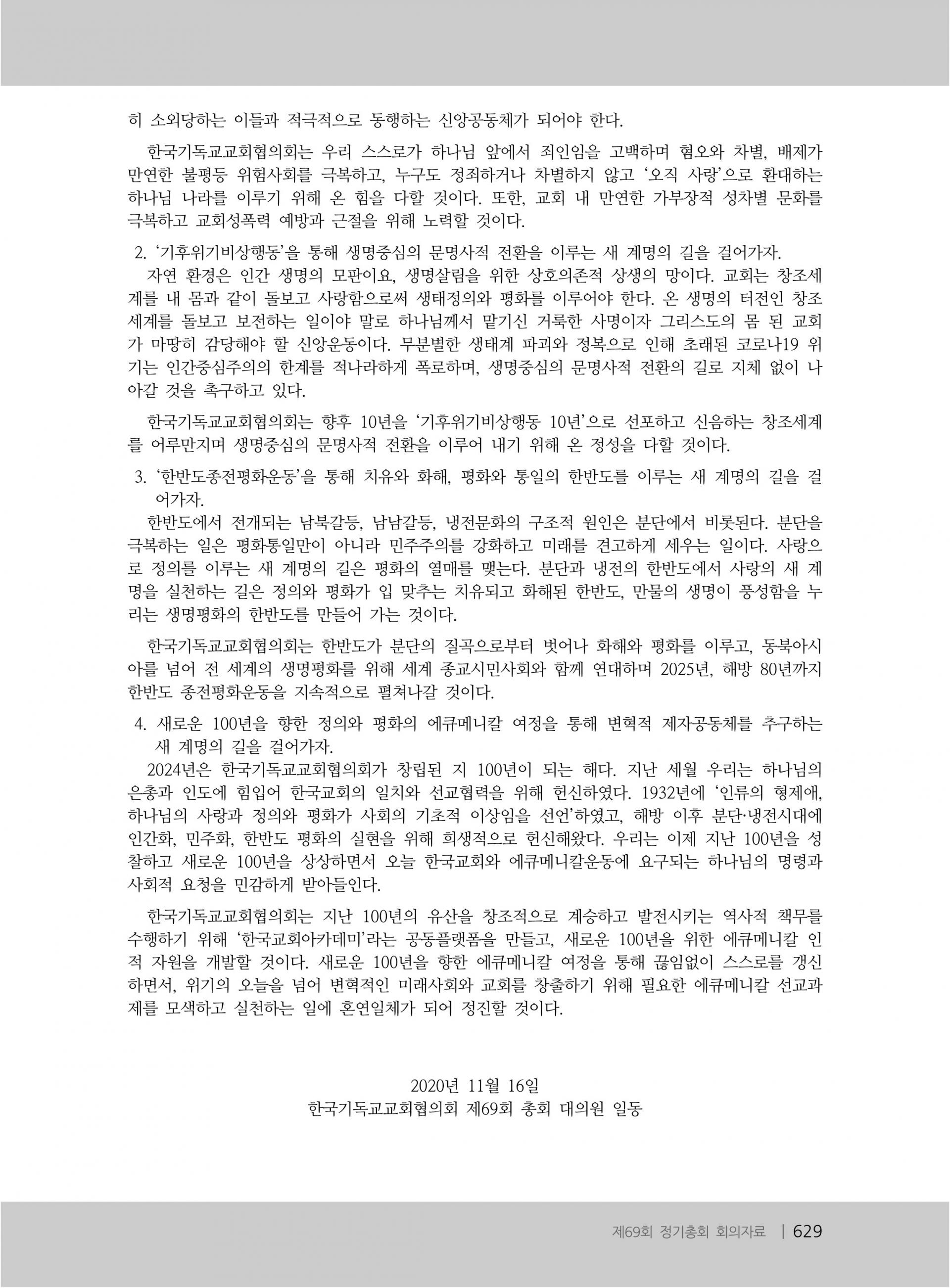 한국기독교교회협의회 제69회 총회 선언문