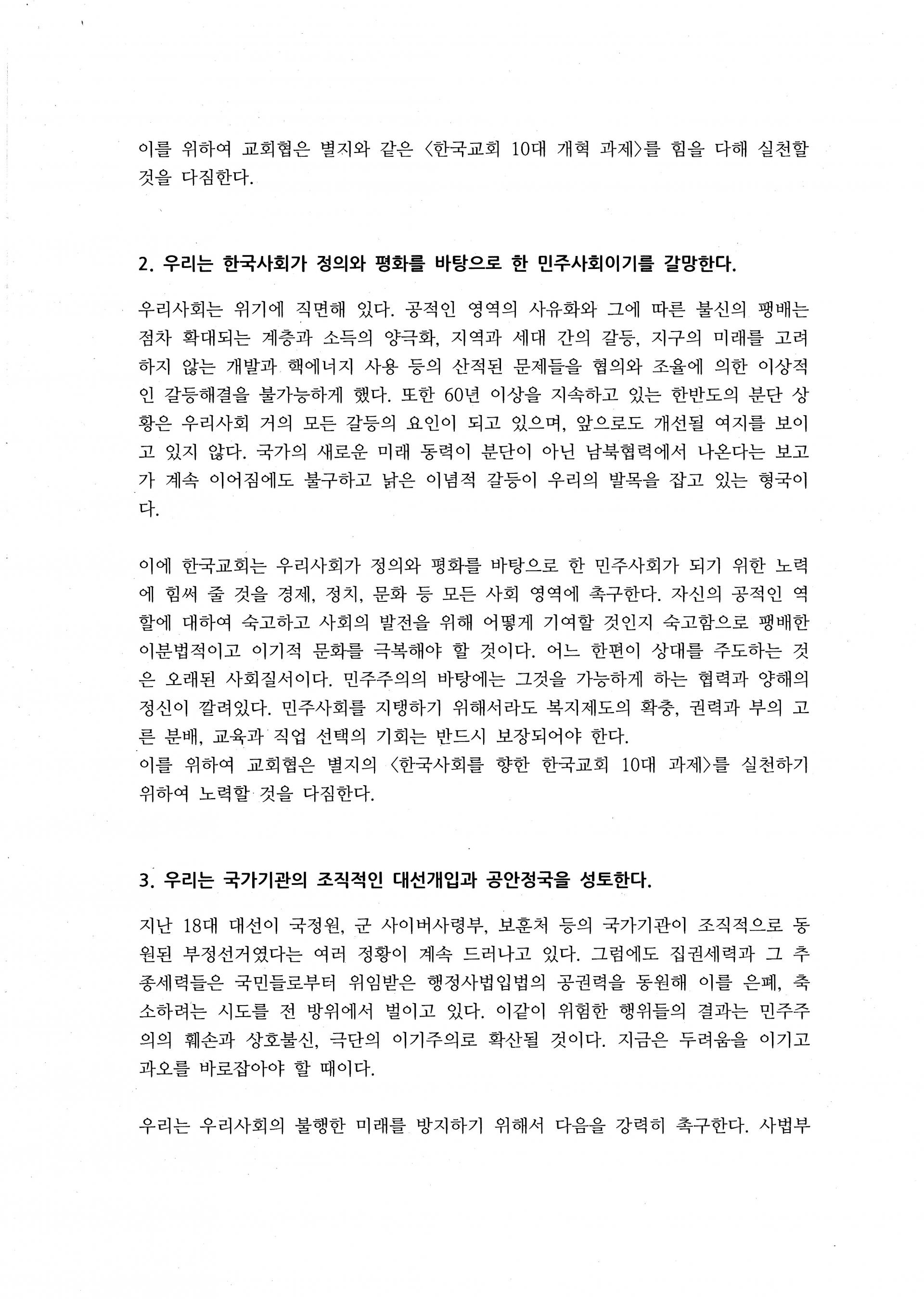 한국기독교교회협의회 제68회 총회 선언문