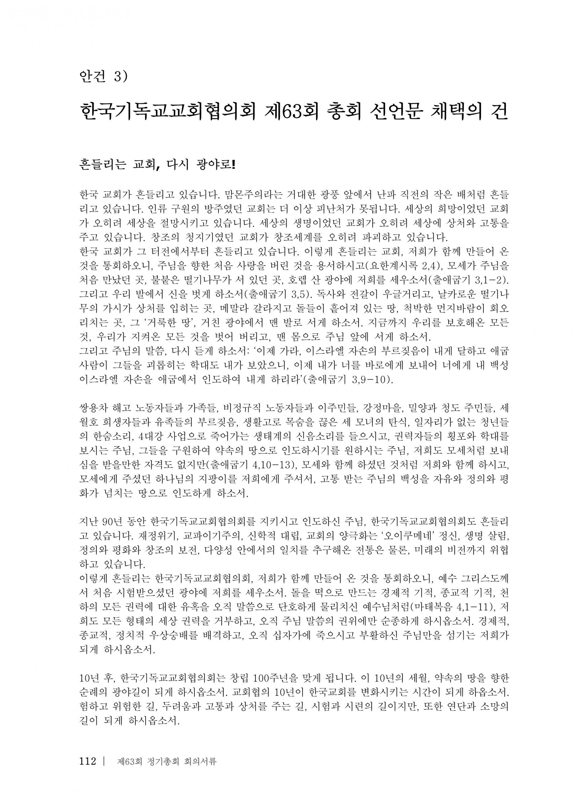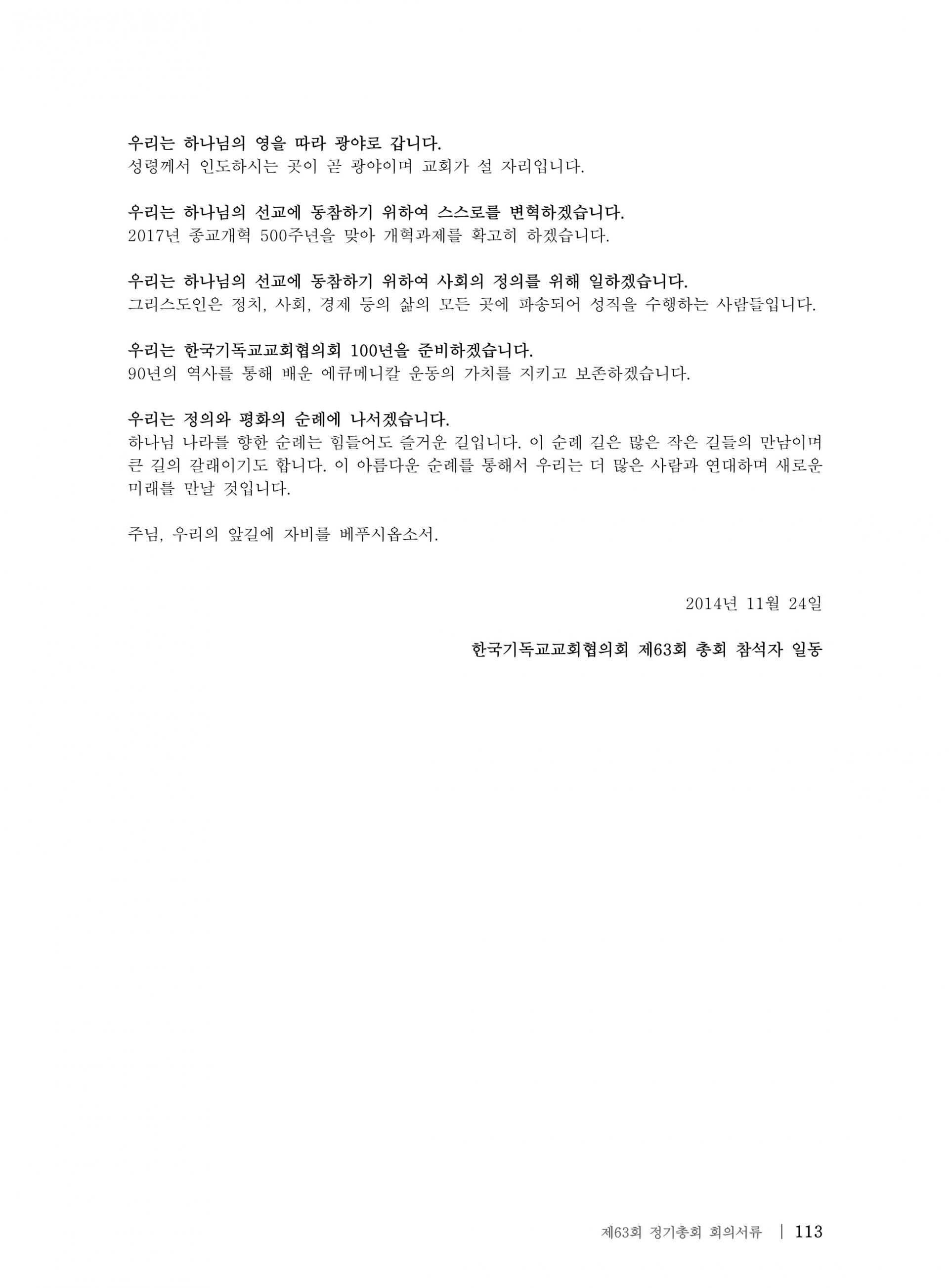 한국기독교교회협의회 제63회 총회 선언문