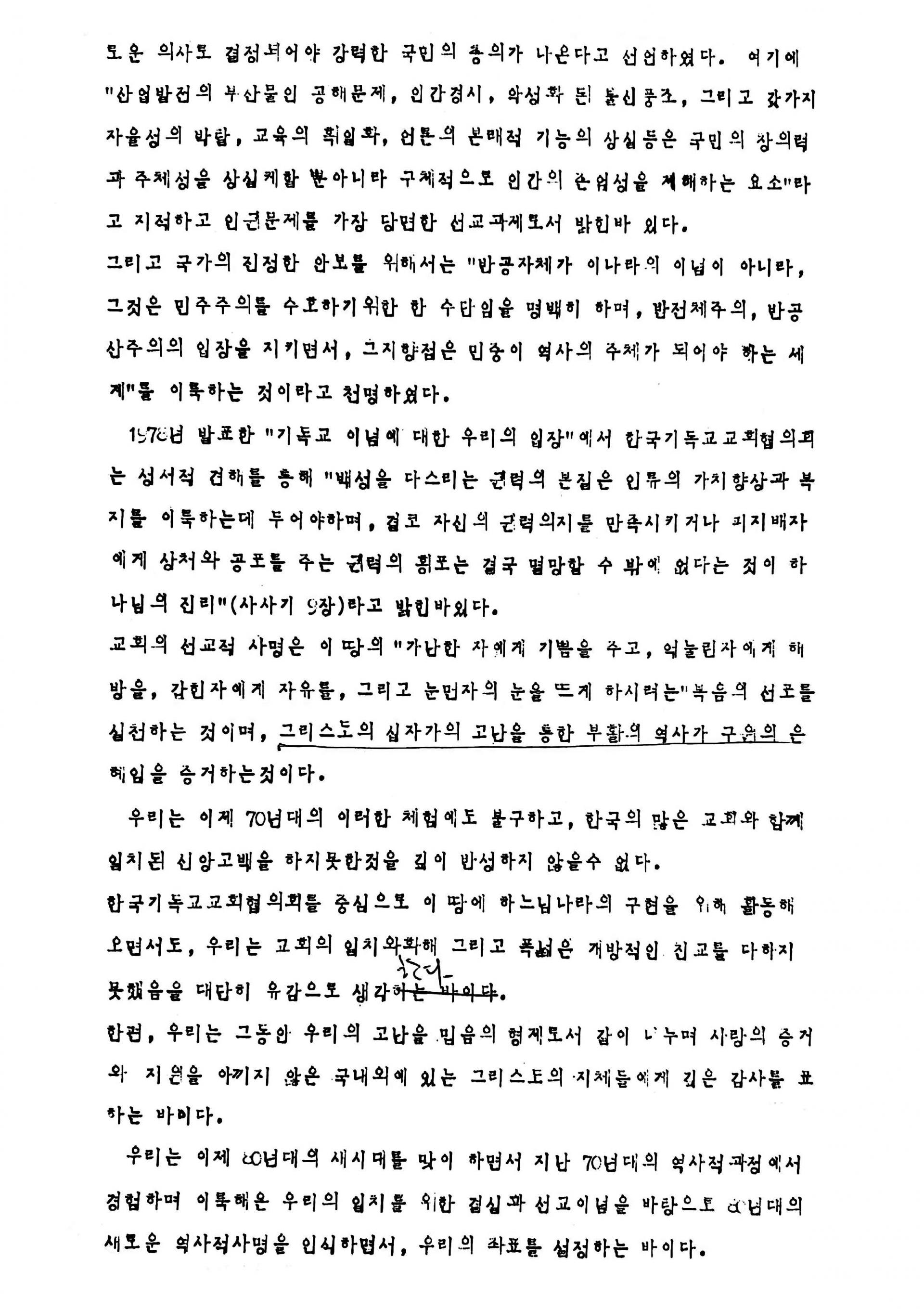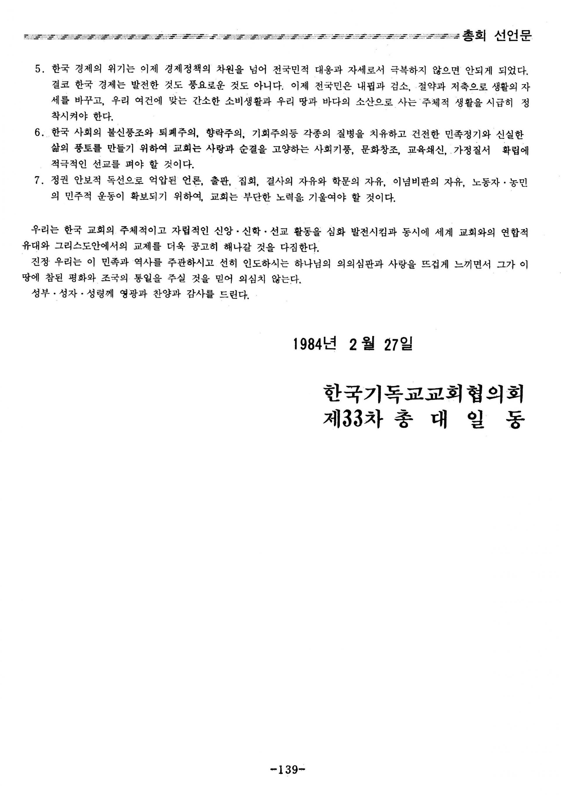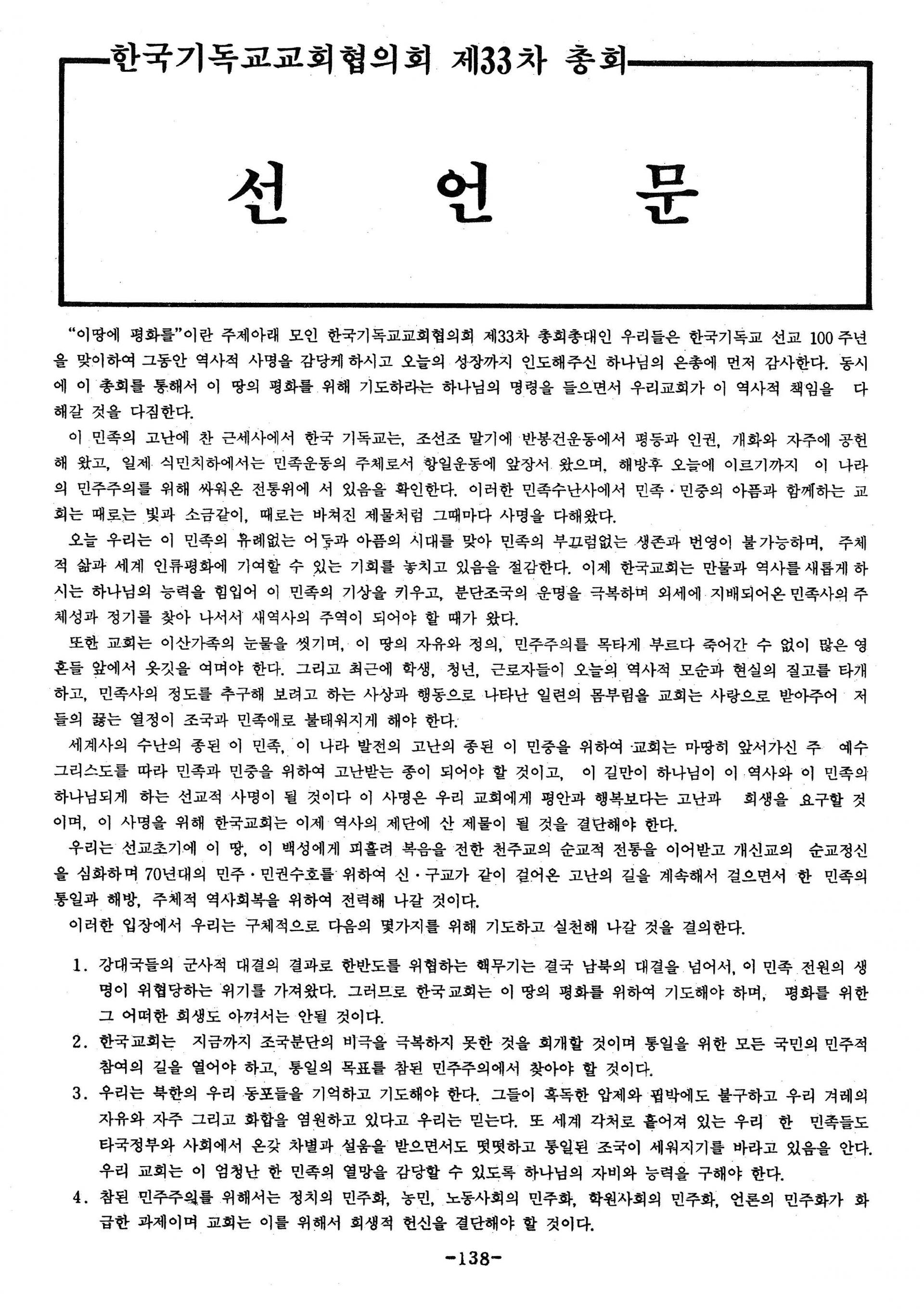 제33차 한국기독교교회협의회 총회 선언문