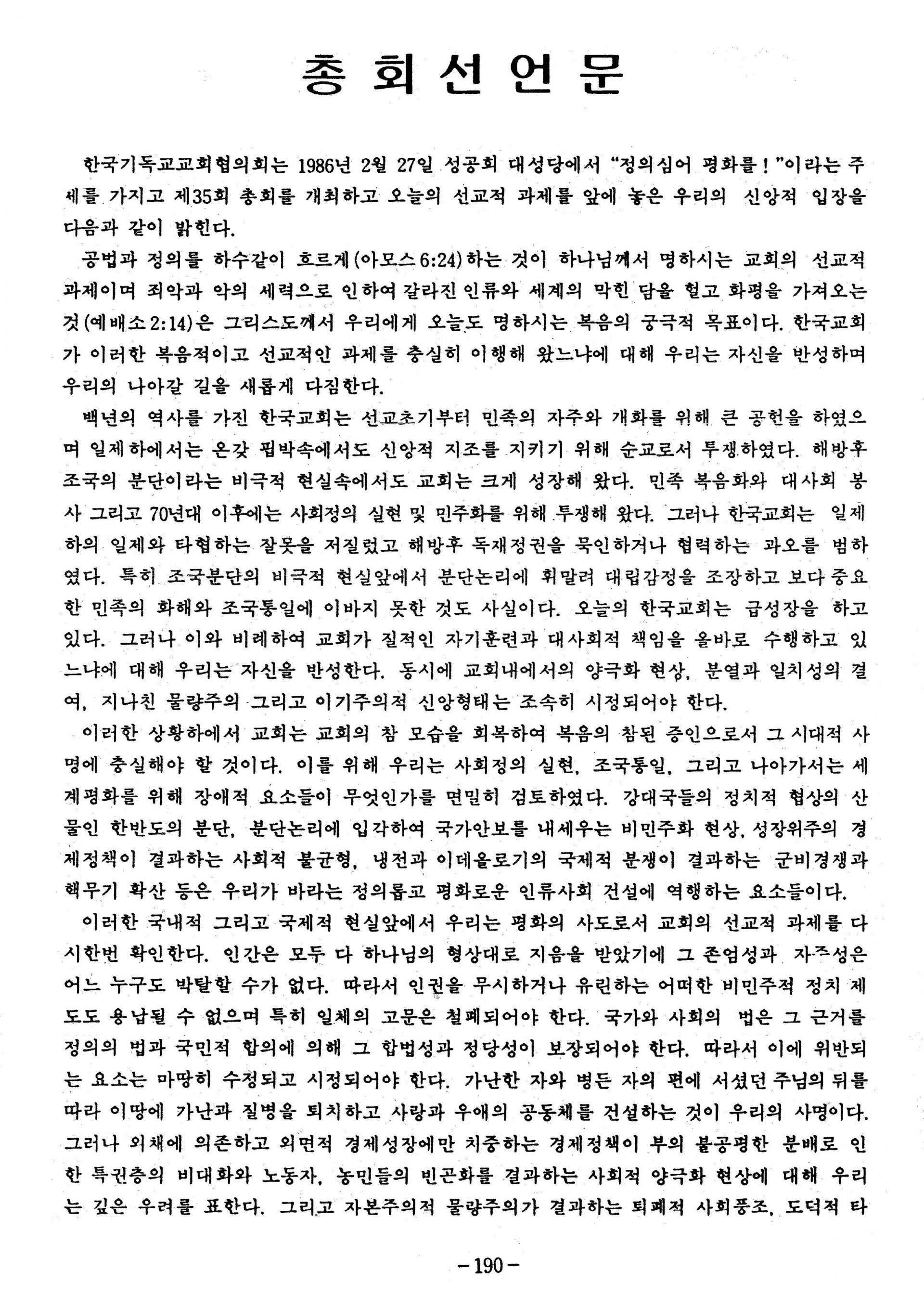 한국기독교교회협의회 제35회 총회 선언문
