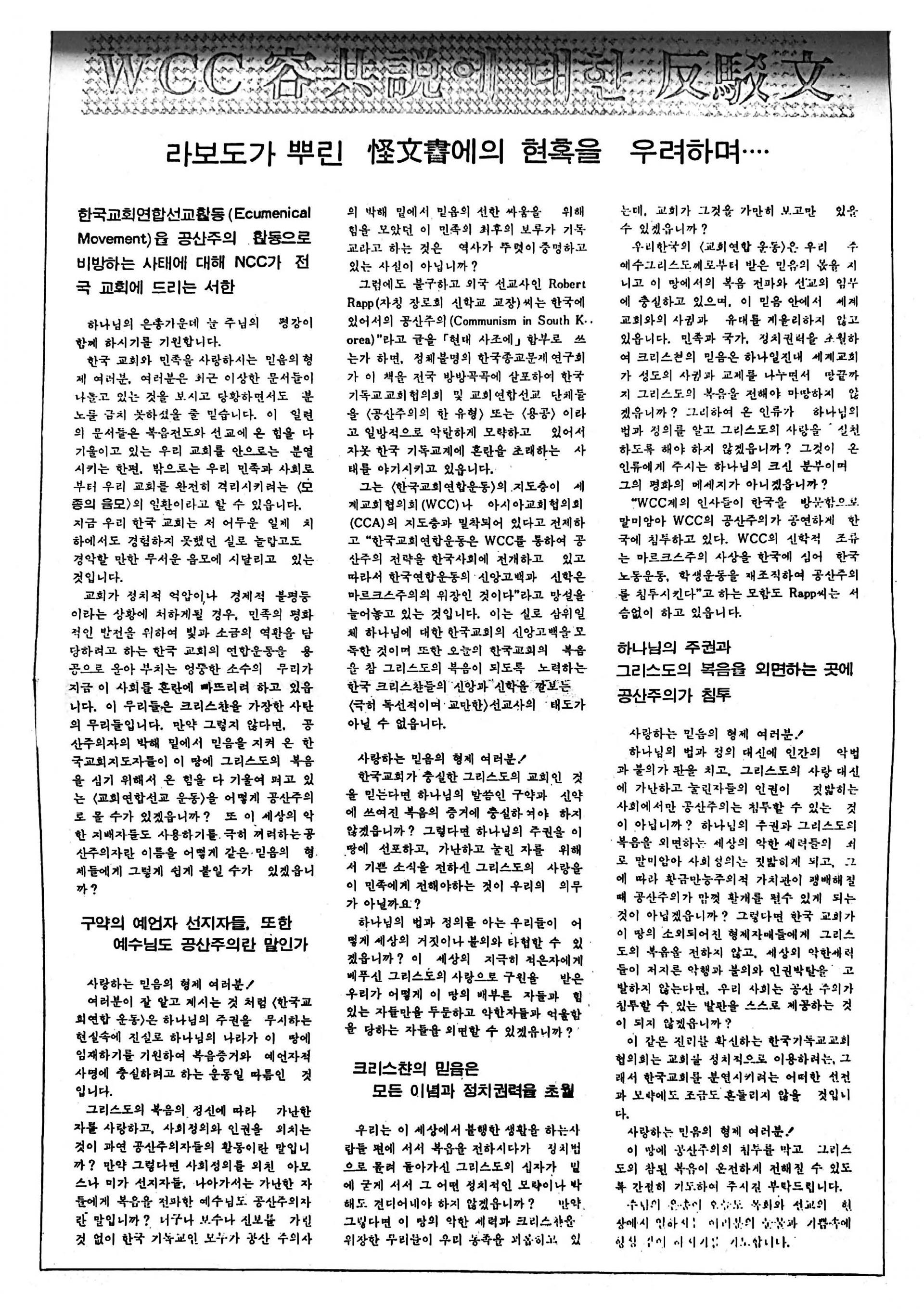 WCC 용공설에 대한 반박문