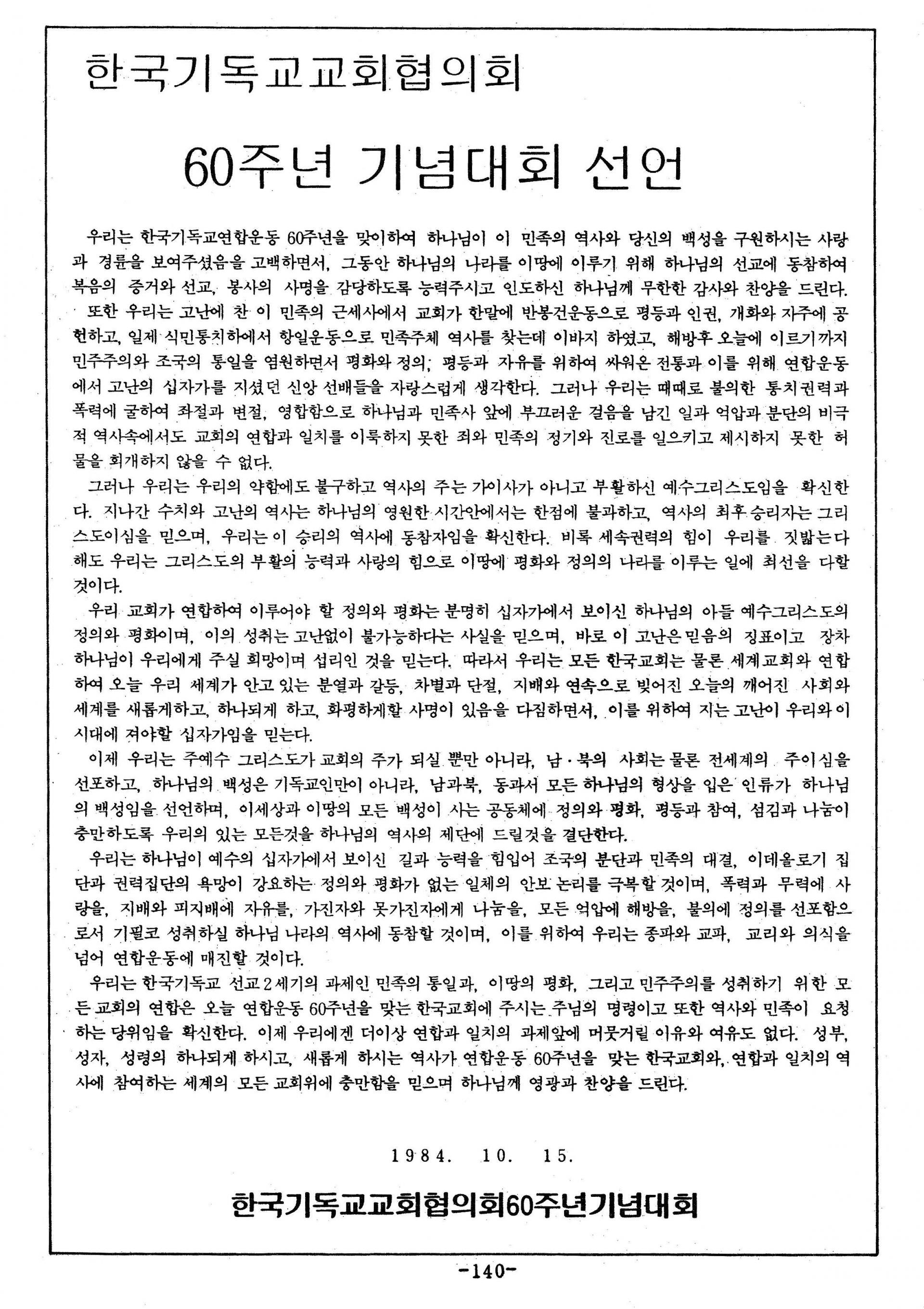 한국기독교교회협의회 60주년 기념대회 선언