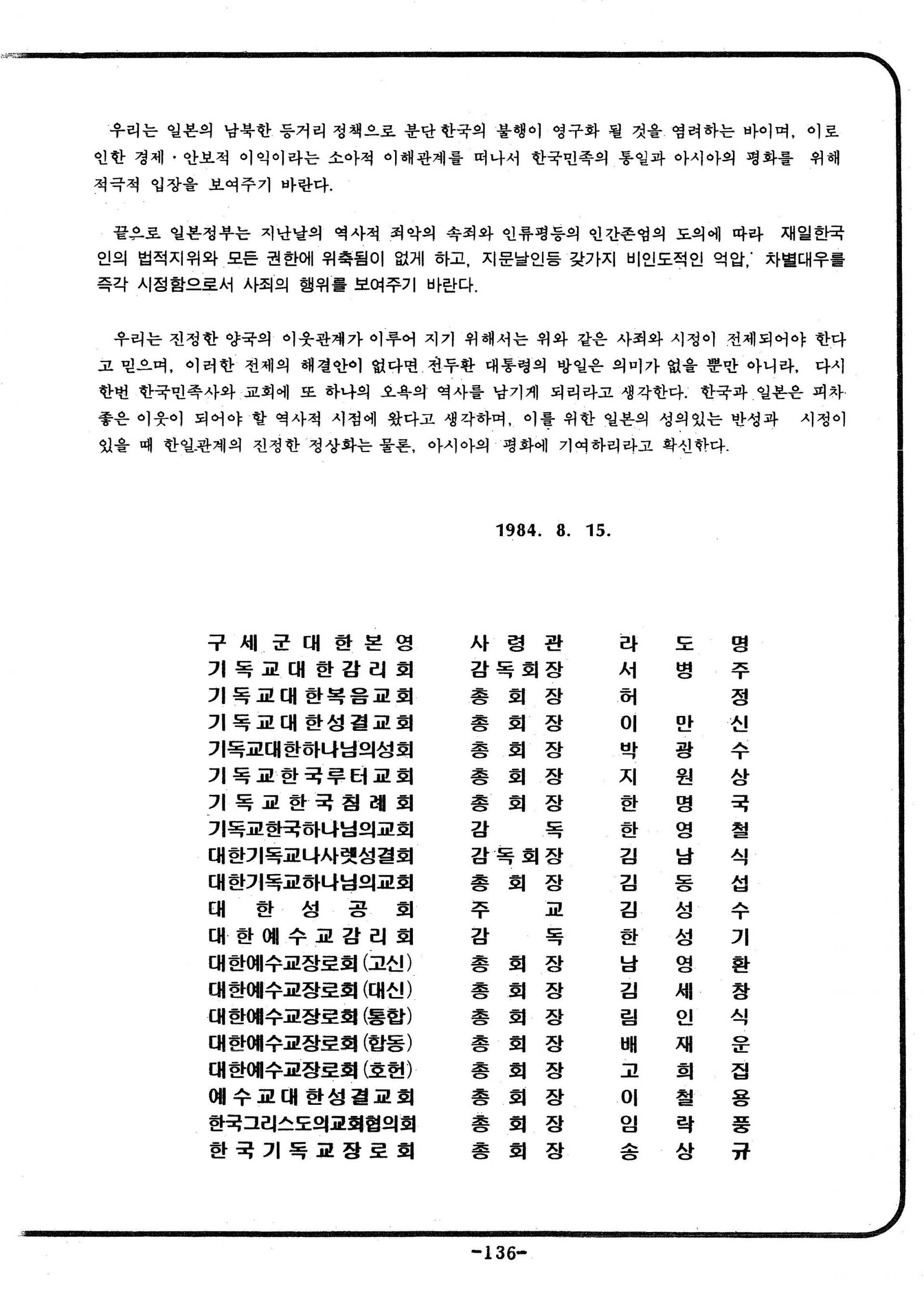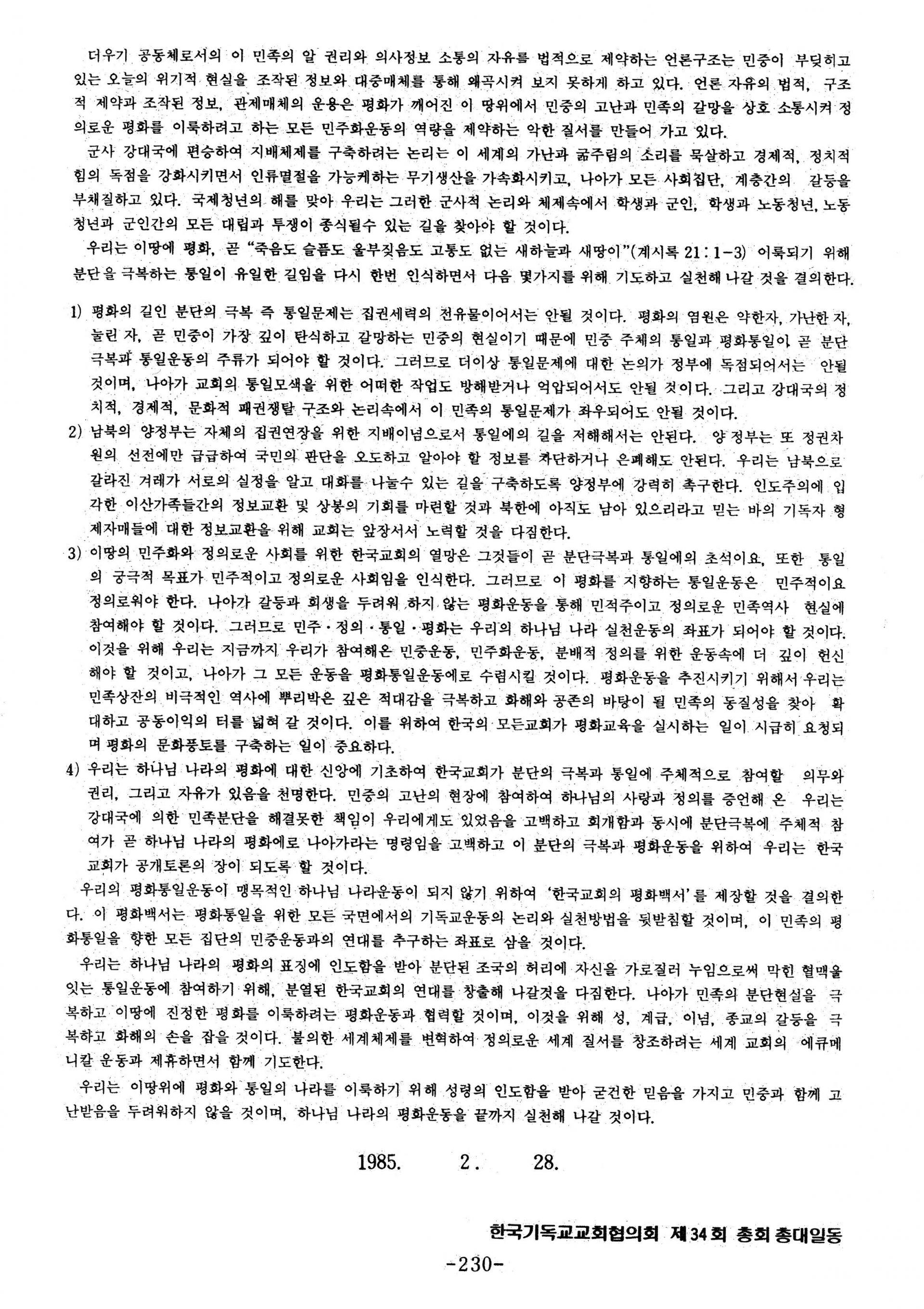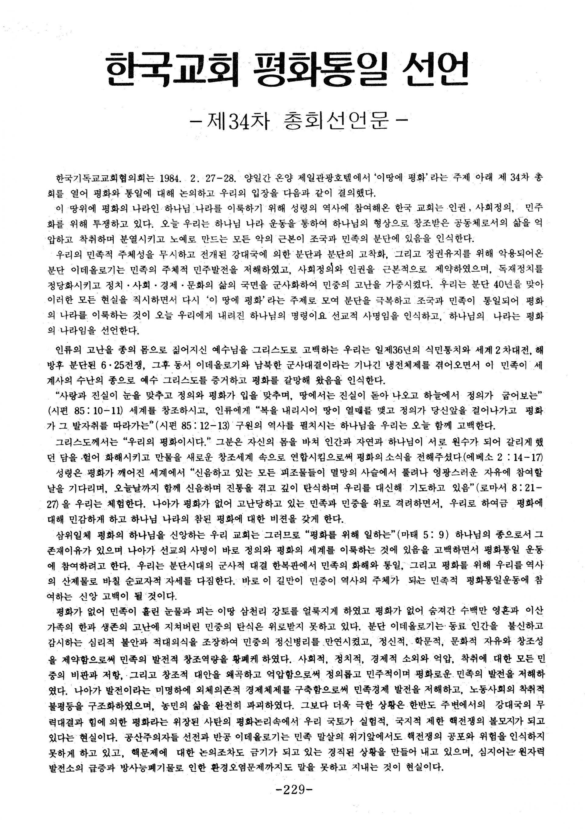 한국기독교교회협의회 제34회 총회 선언문 - 한국교회 평화통일 선언 -