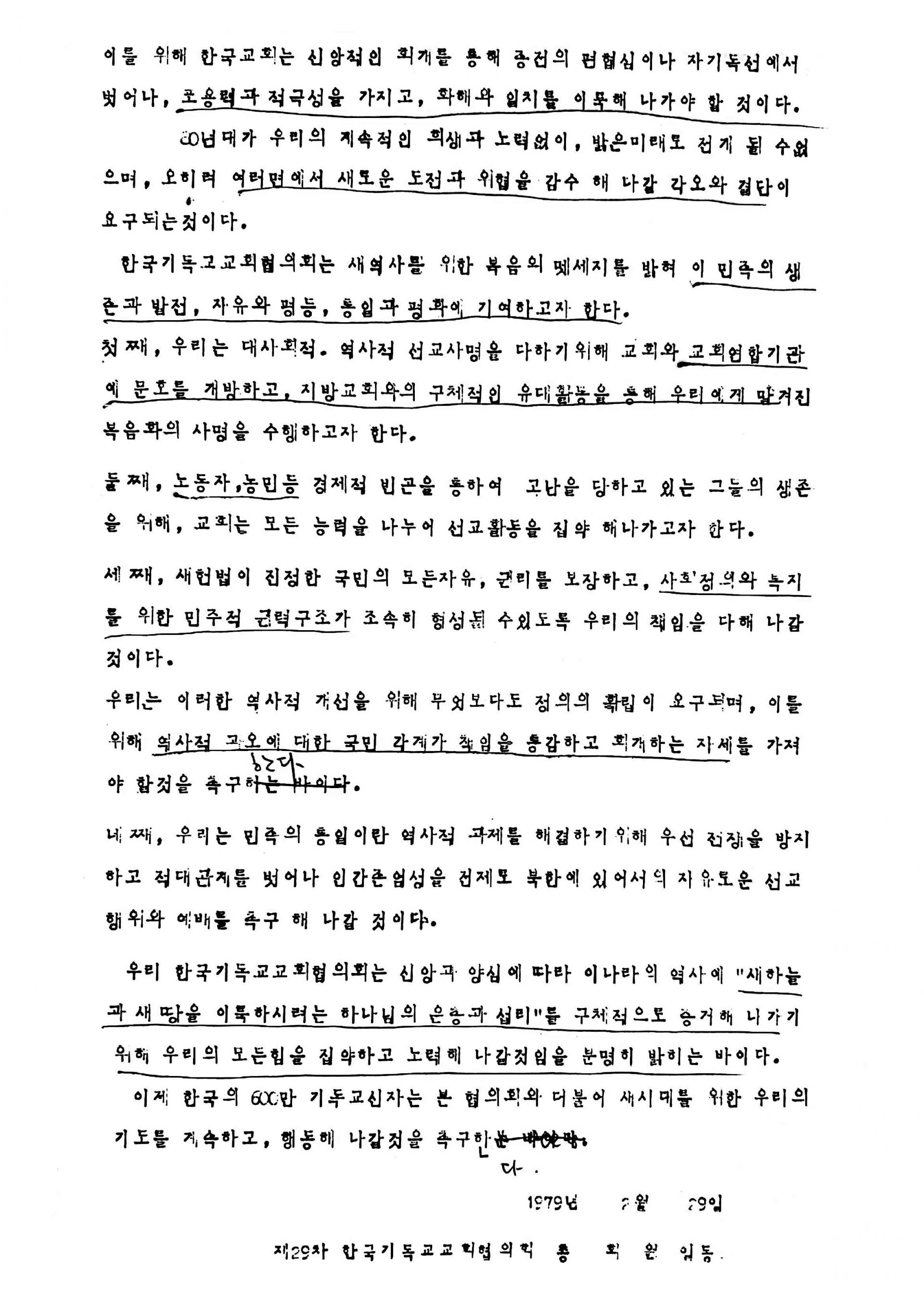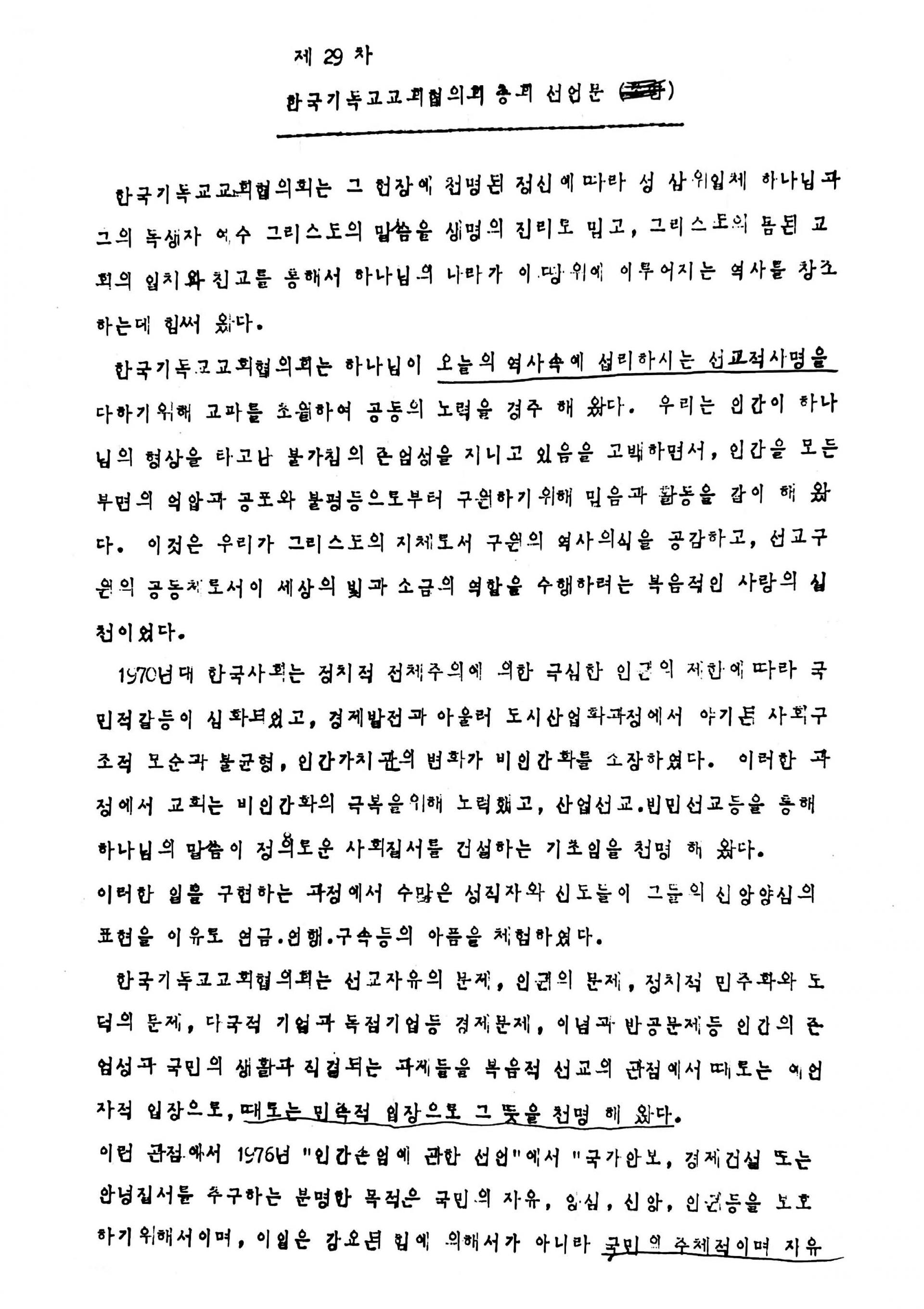 제29차 한국기독교교회협의회 총회 선언문