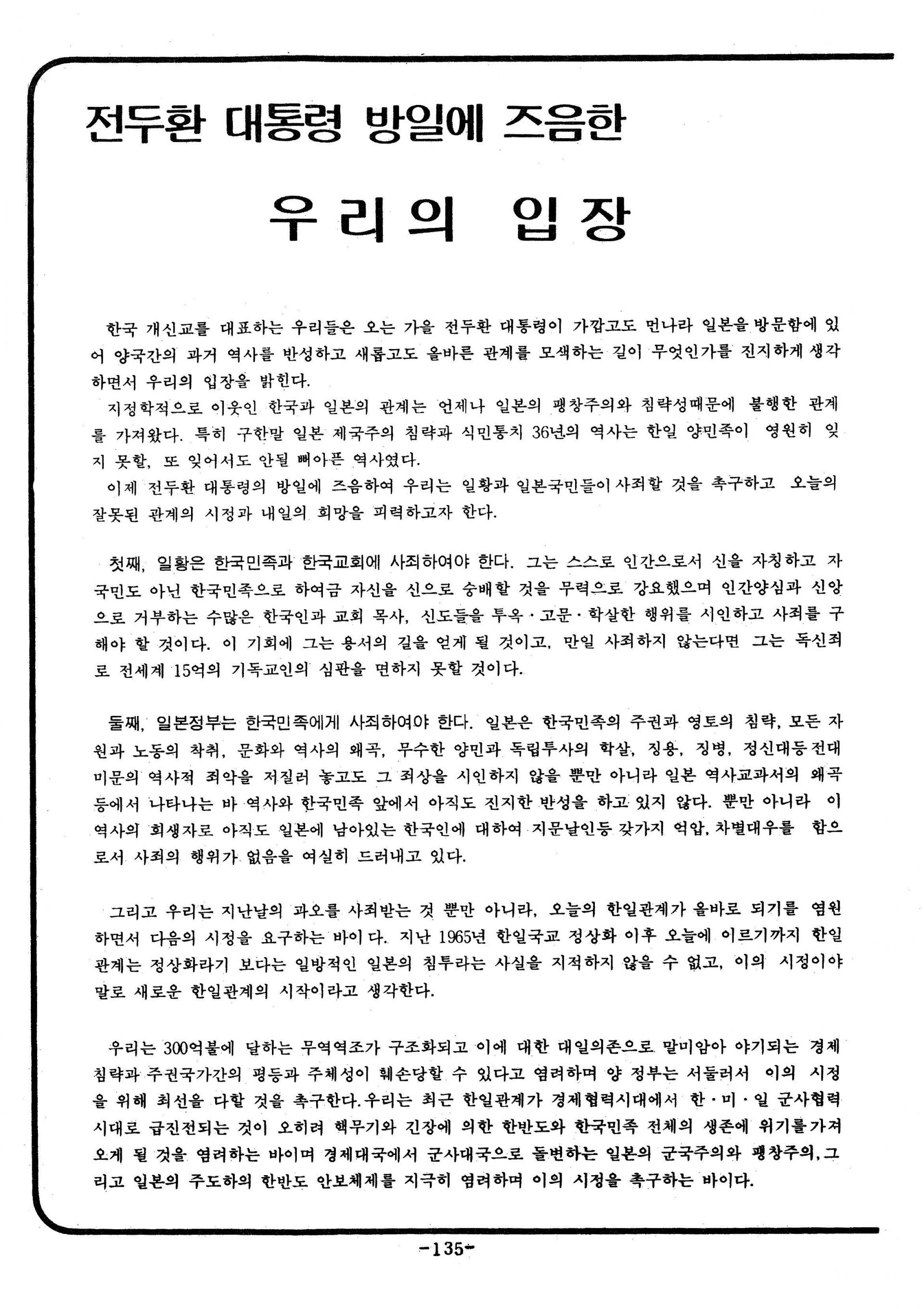 전두환 대통령 방일에 즈음한 우리의 입장