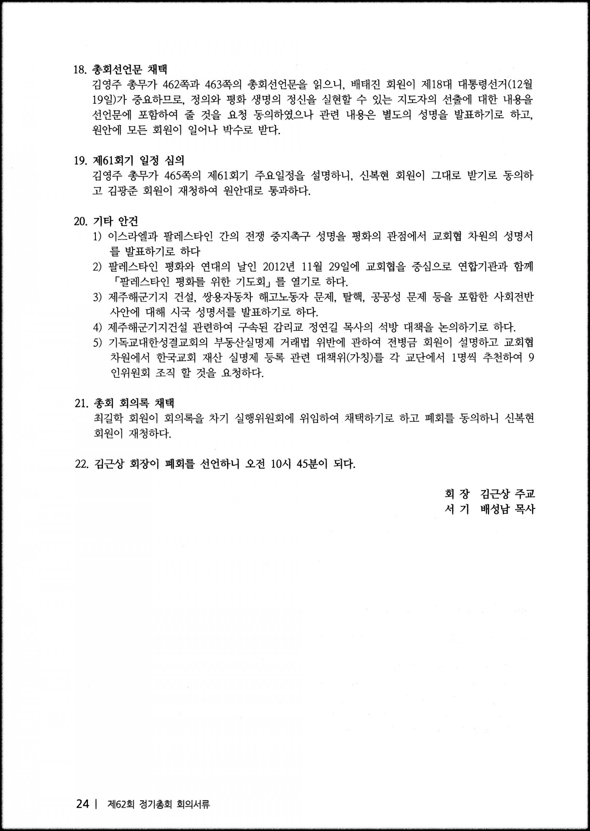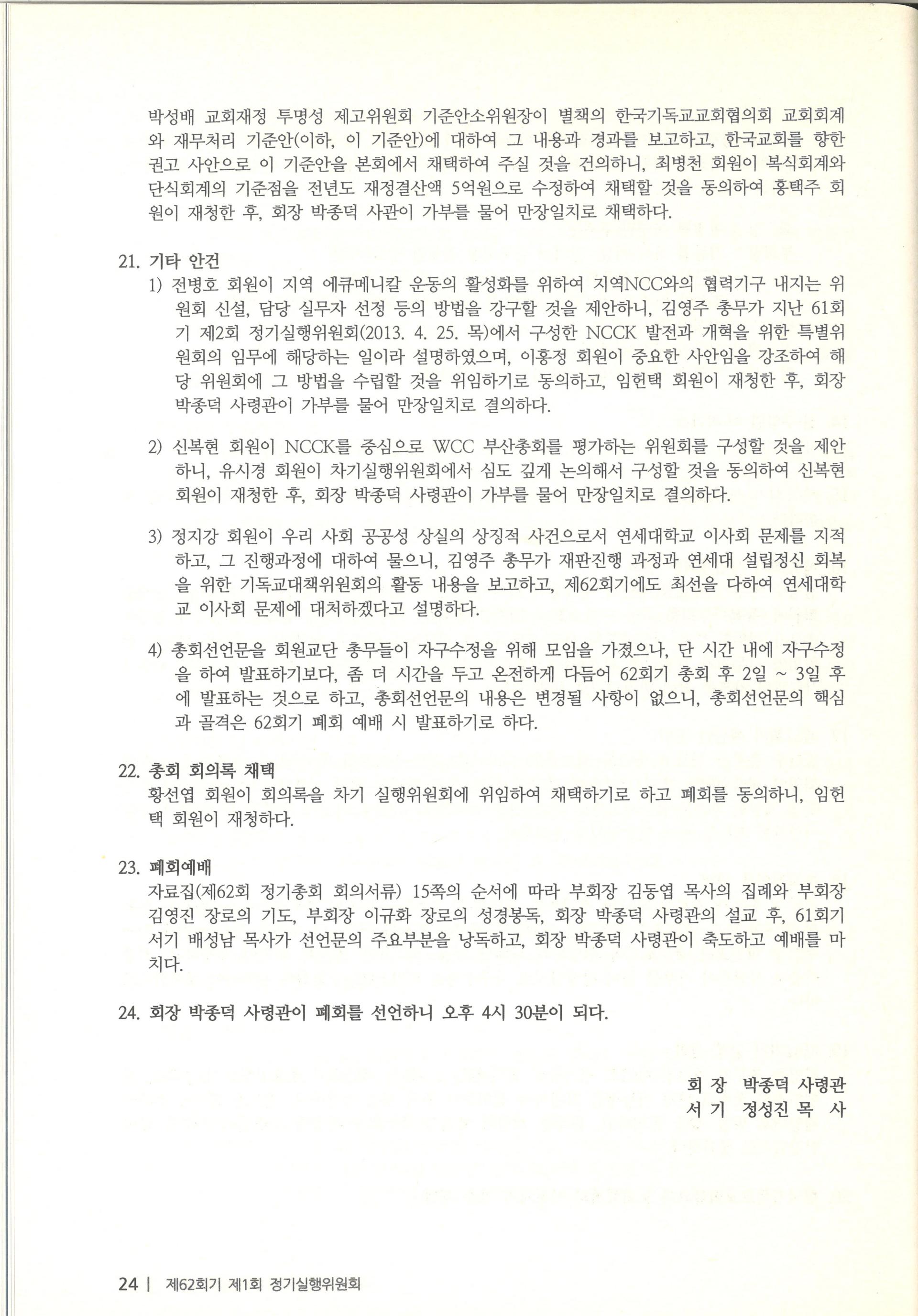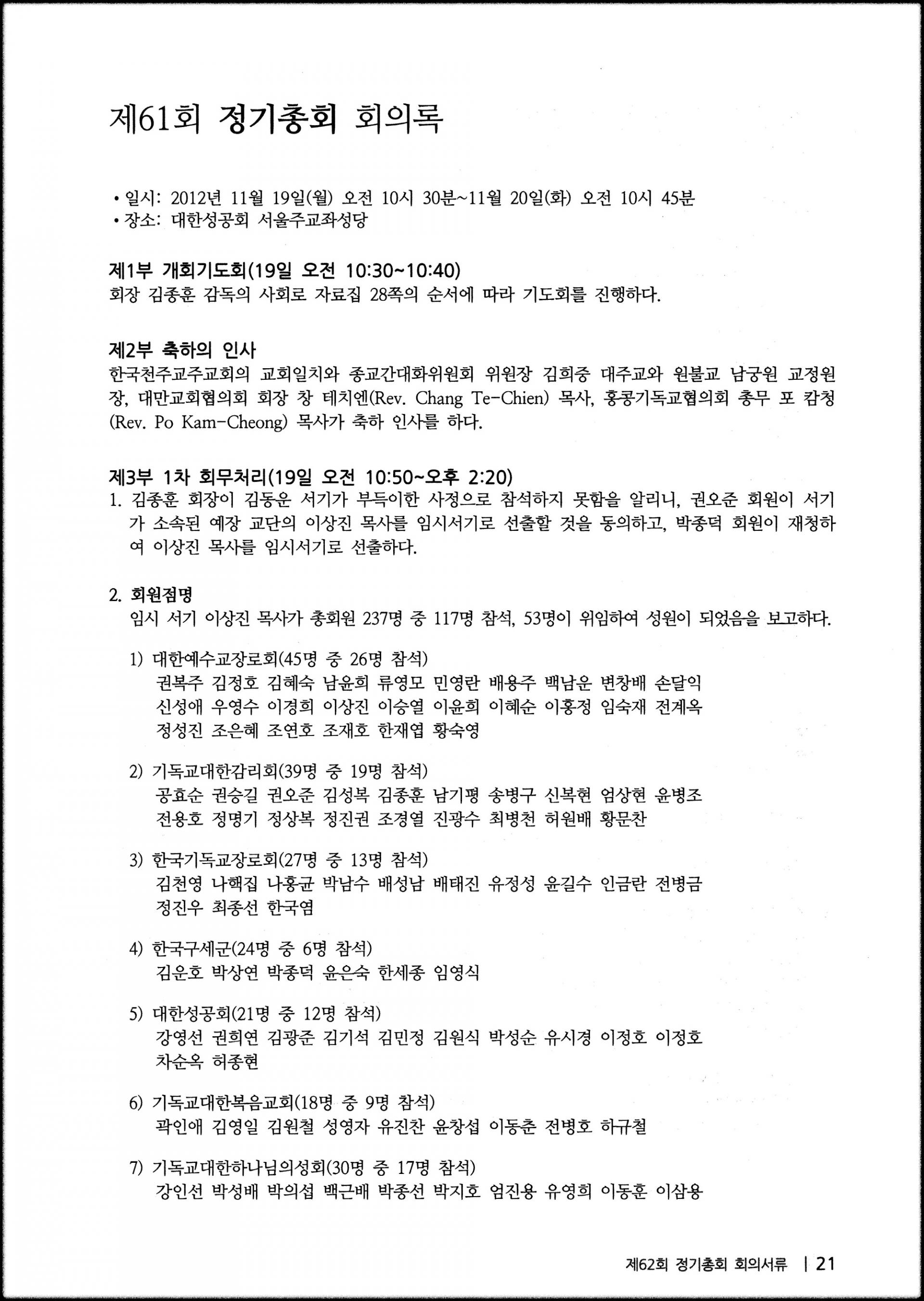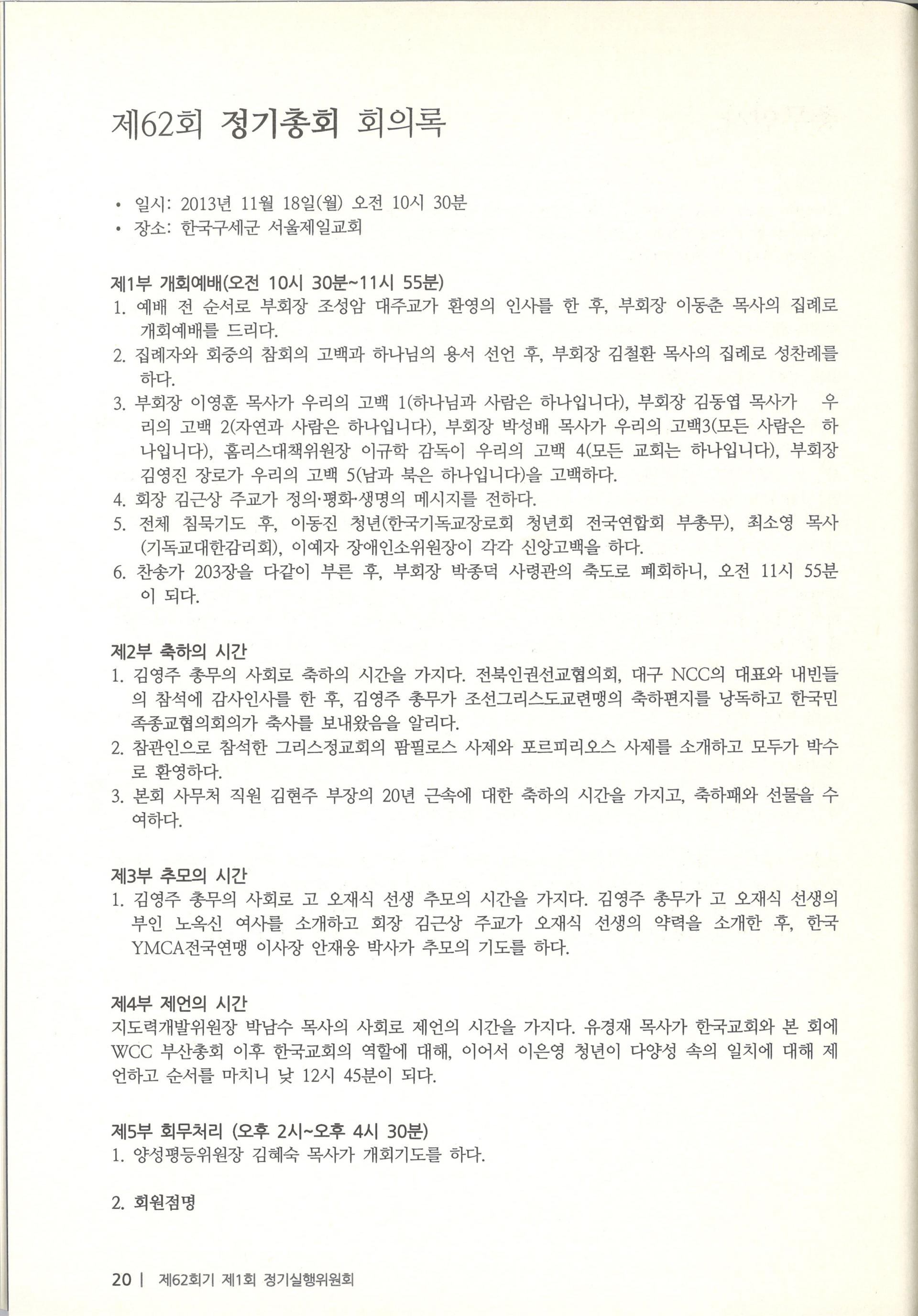 제62회 한국기독교교회협의회 [2013년 11월 18일, 구세군 서울제일교회]