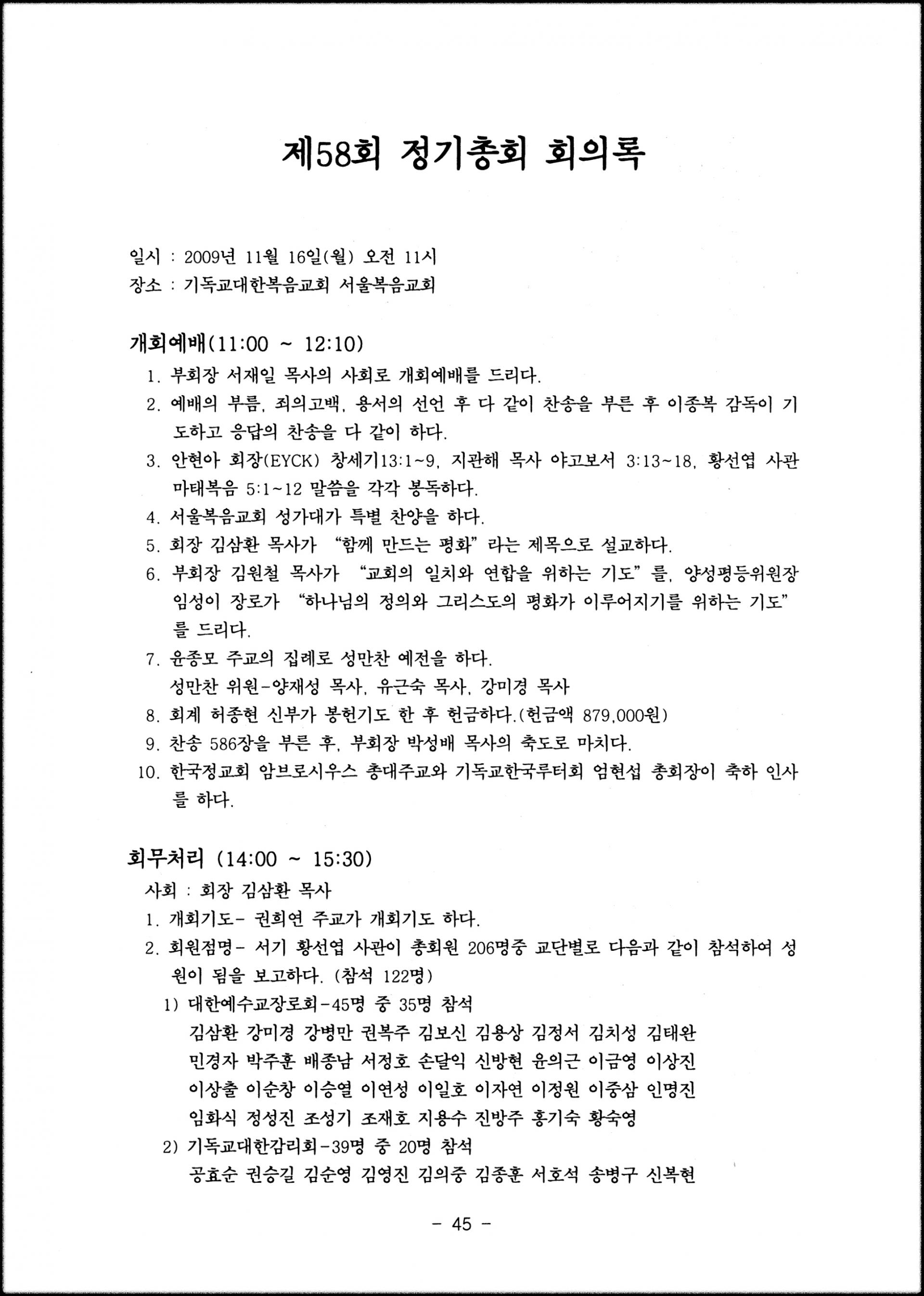 [2009년 11월 16일, 서울복음교회]