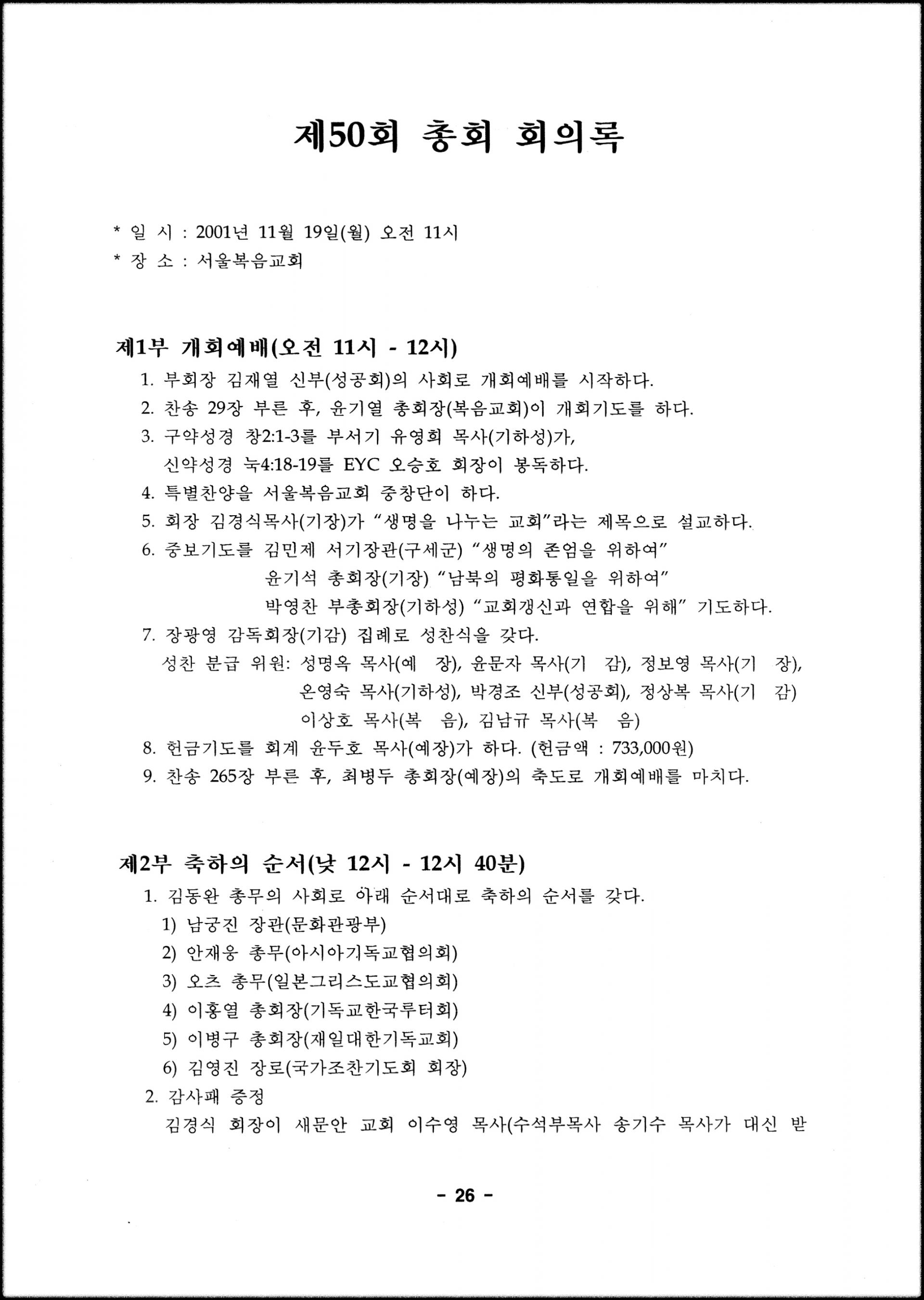 [2001년 11월 19일, 서울복음교회]