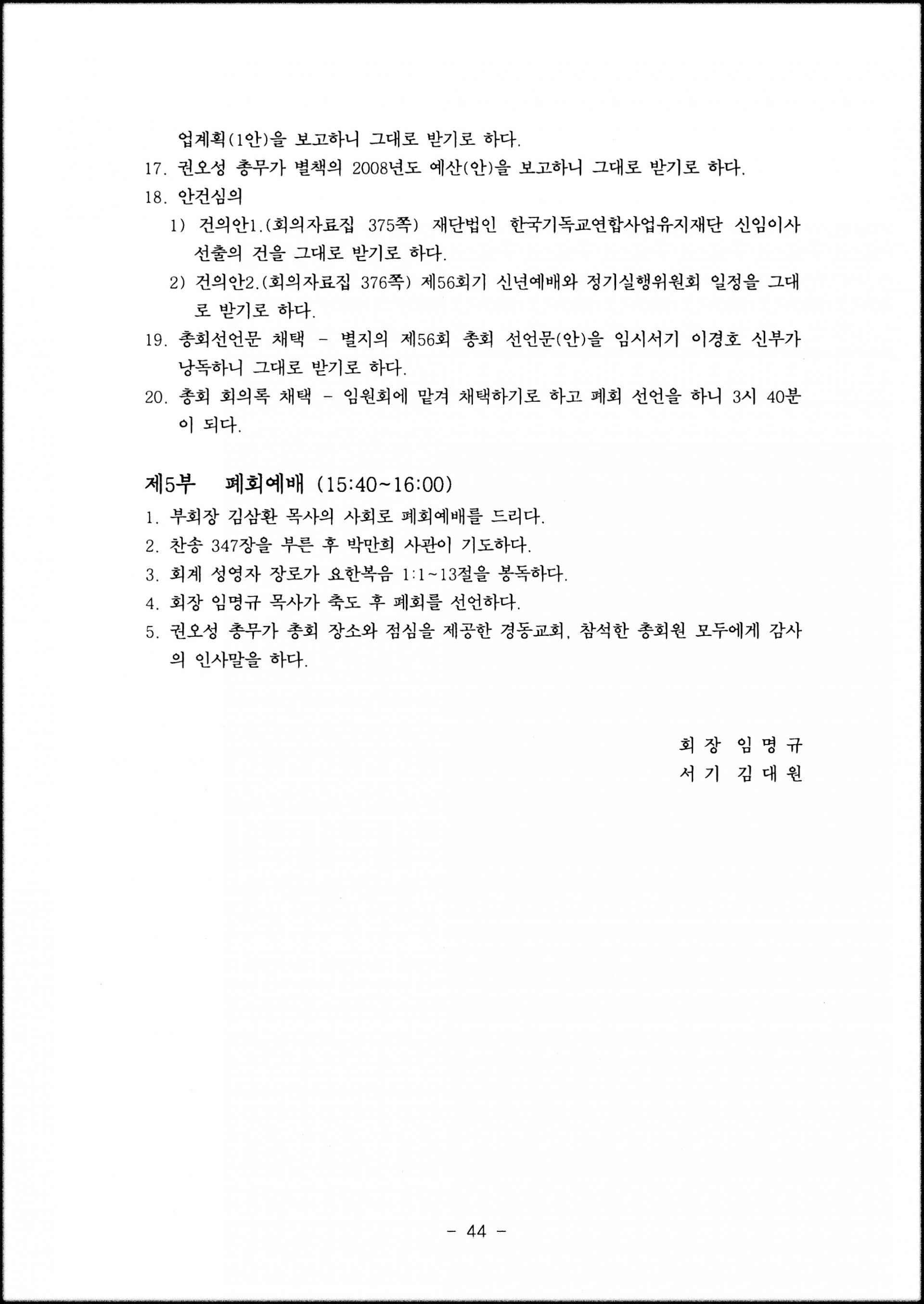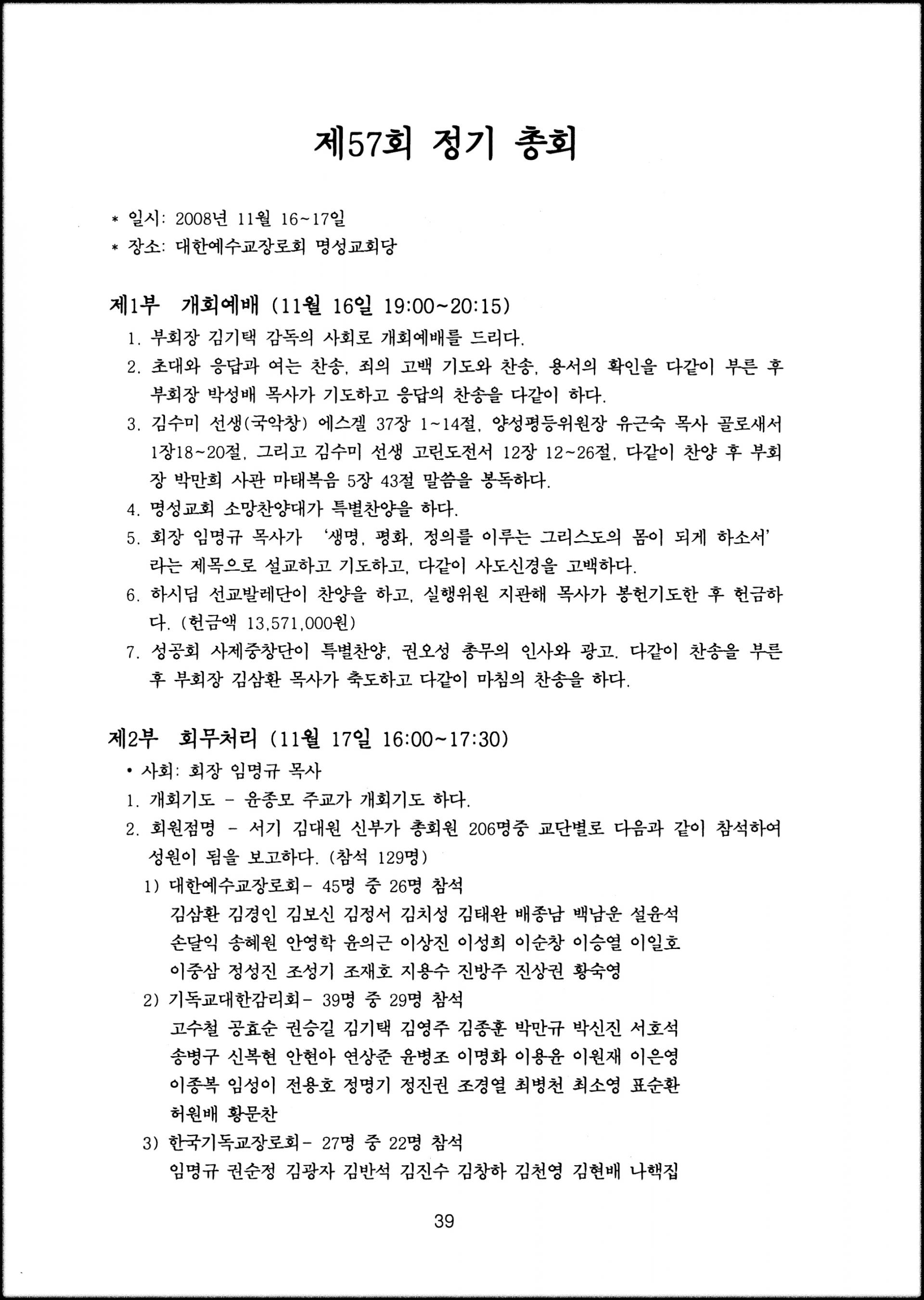 [2008년 11월 17일, 명성교회당]
