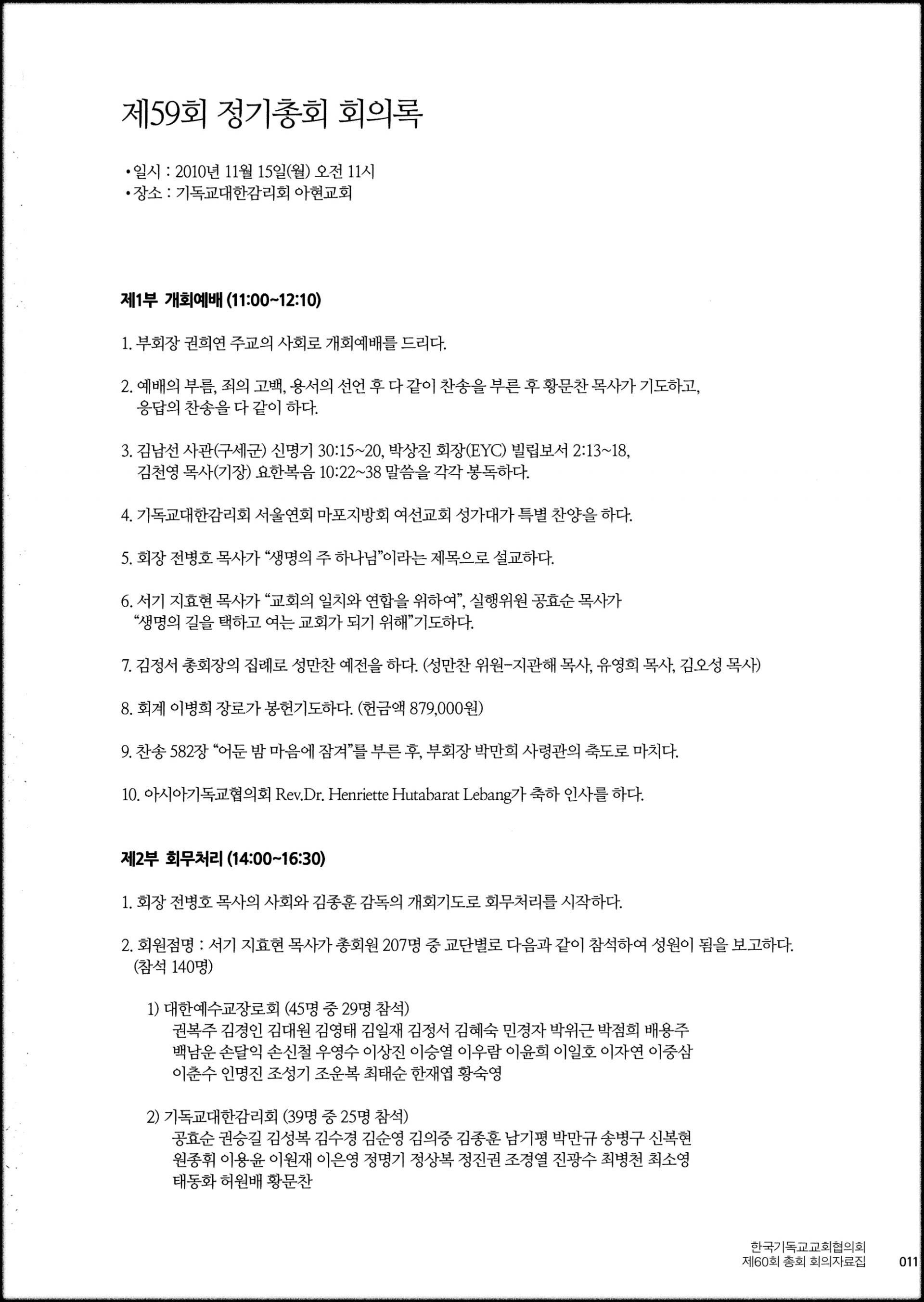 [2010년 11월 15일, 기독교대한감리회 아현교회당]